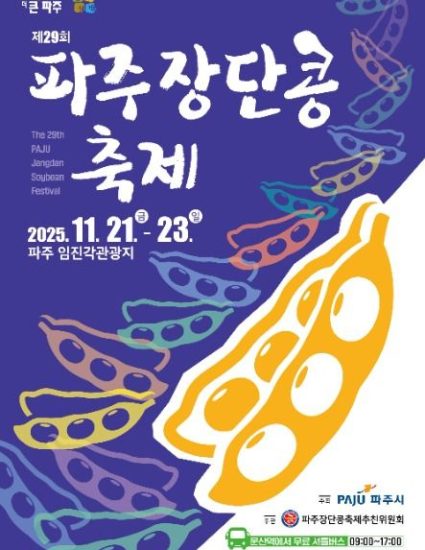 즐길 포인트: 전국 대표 장단콩을 활용한 다양한 요리 체험과 농특산물 직거래 장터가 매력적입니다. 특히 직접 콩을 수확해 보는 체험 프로그램도 인기 만점이며, 아이와 함께 가기 좋아 가족 여행에 제격입니다.